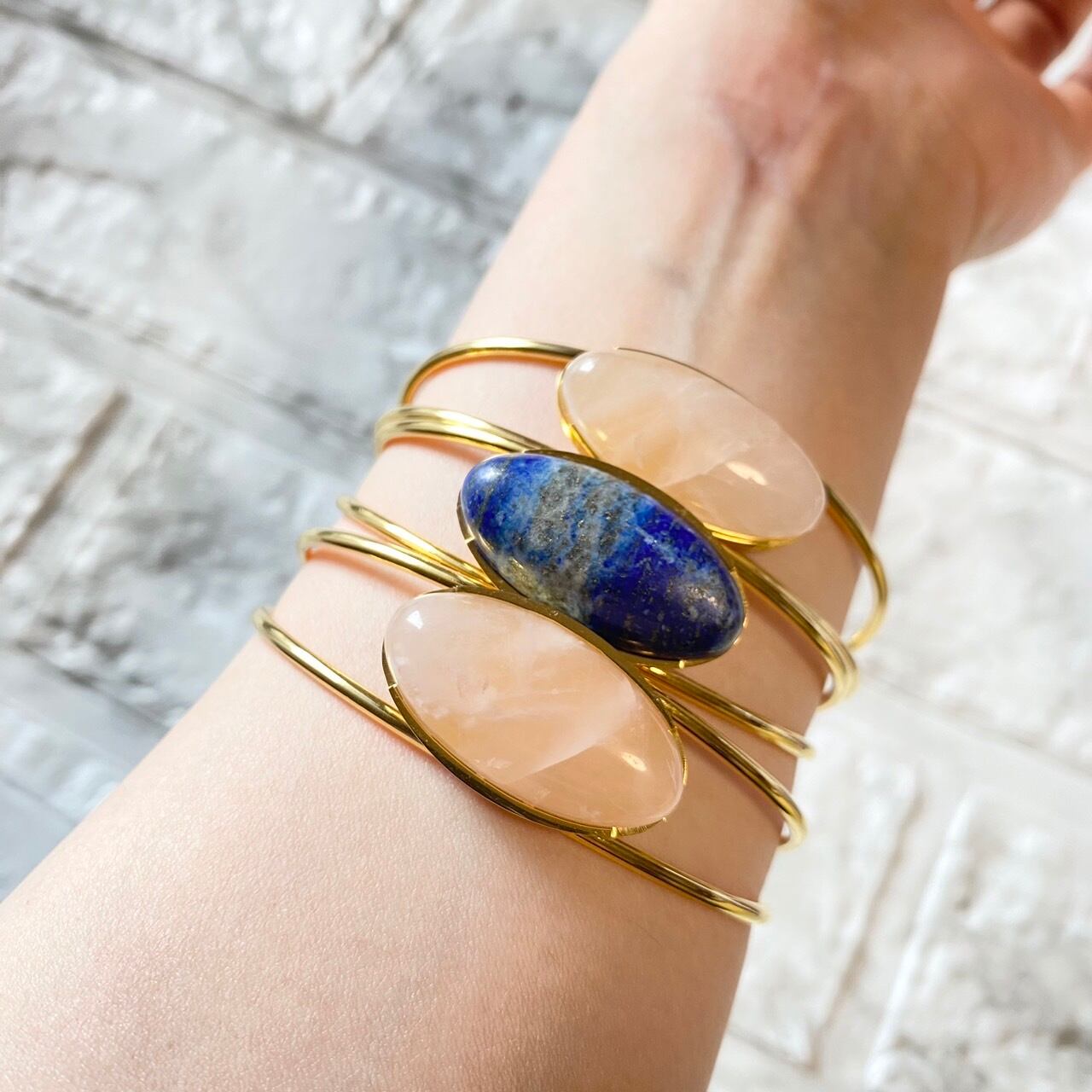大ぶりのラピスラズリとローズクォーツの存在感が光ります。